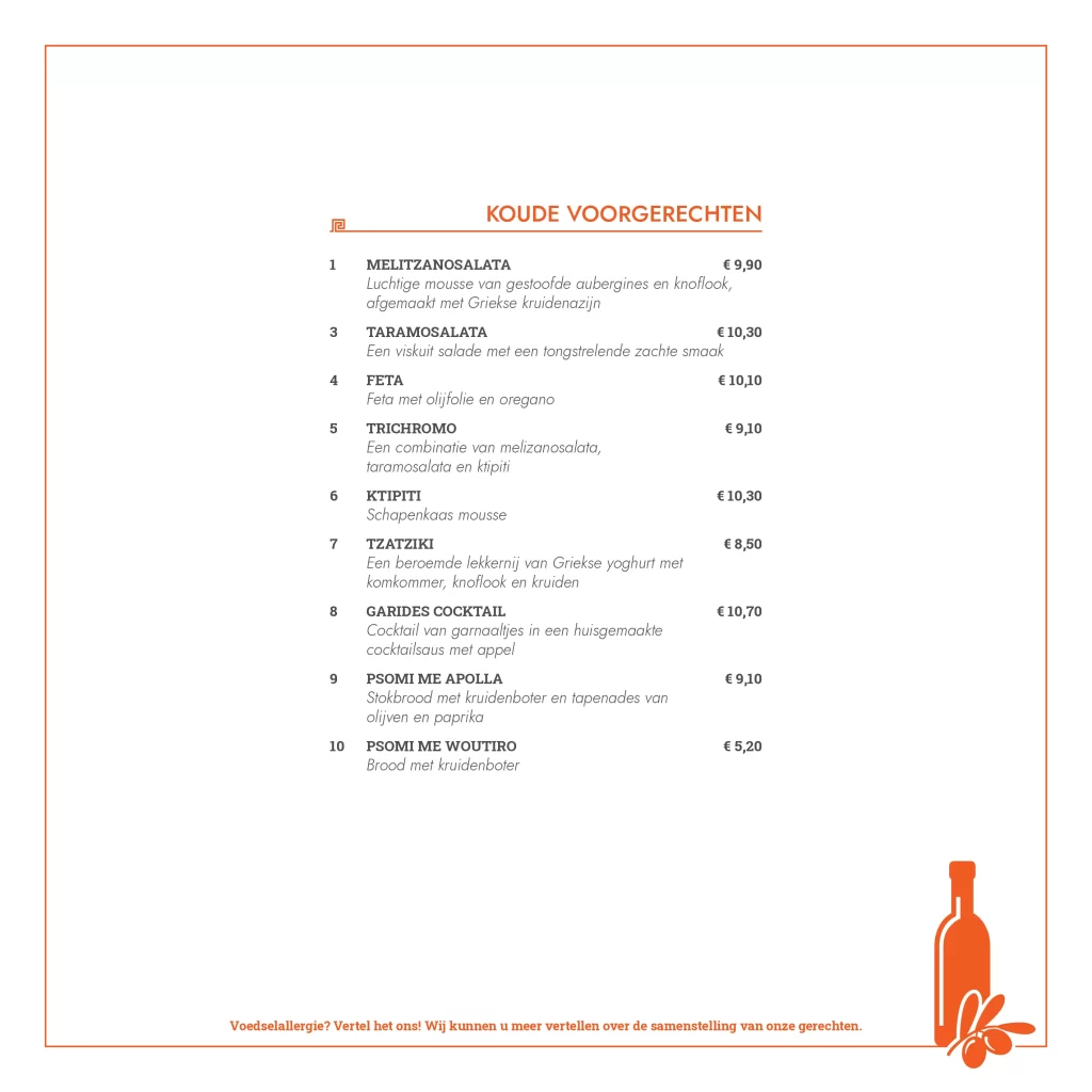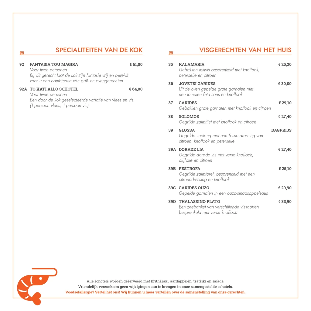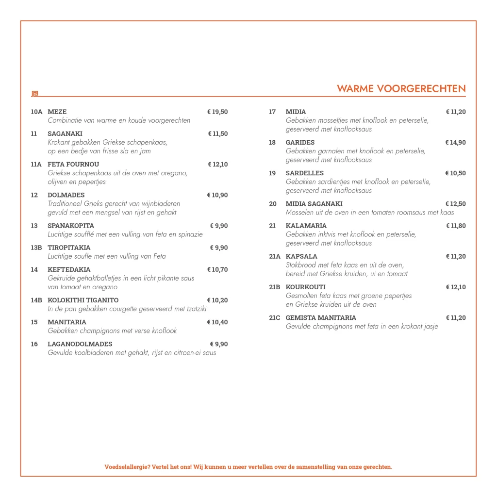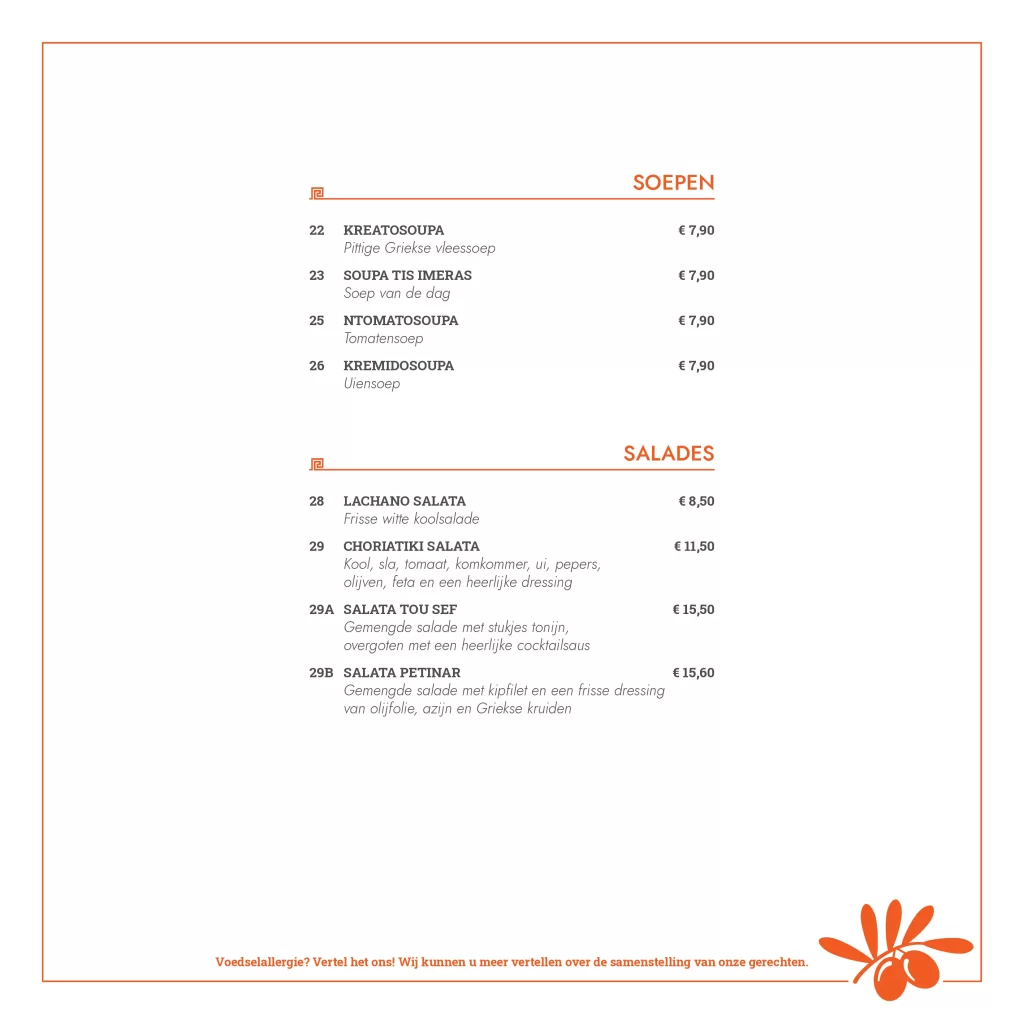 Kwaliteit, service en gastvrijheid. Deze ingrediënten staan centraal bij Grieks restaurant Olympia. Wij verzorgen al sinds 2006 de meest smakelijke Griekse gerechten. Versheid van onze producten staat op nummer één, deze kwaliteit komt absoluut tot uiting in de heerlijke gerechten die de keukenbrigade van Olympia serveert. Onze kaart is Grieks georiënteerd, maar bevat voor ieder wat wils. Zowel vlees, vis als vegetarische producten, alles wordt door ons zelf bereidt en dat proef je absoluut!